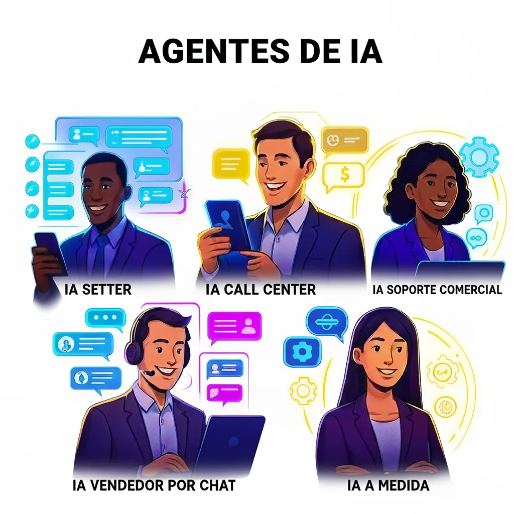 Nuestros Agentes Comerciales IA atienden WhatsApp y llamadas de forma inmediata, agendan citas, confirman turnos y responden preguntas frecuentes 24/7. Menos ausencias, más clientes confirmados, sin sobrecargar a tu equipo.